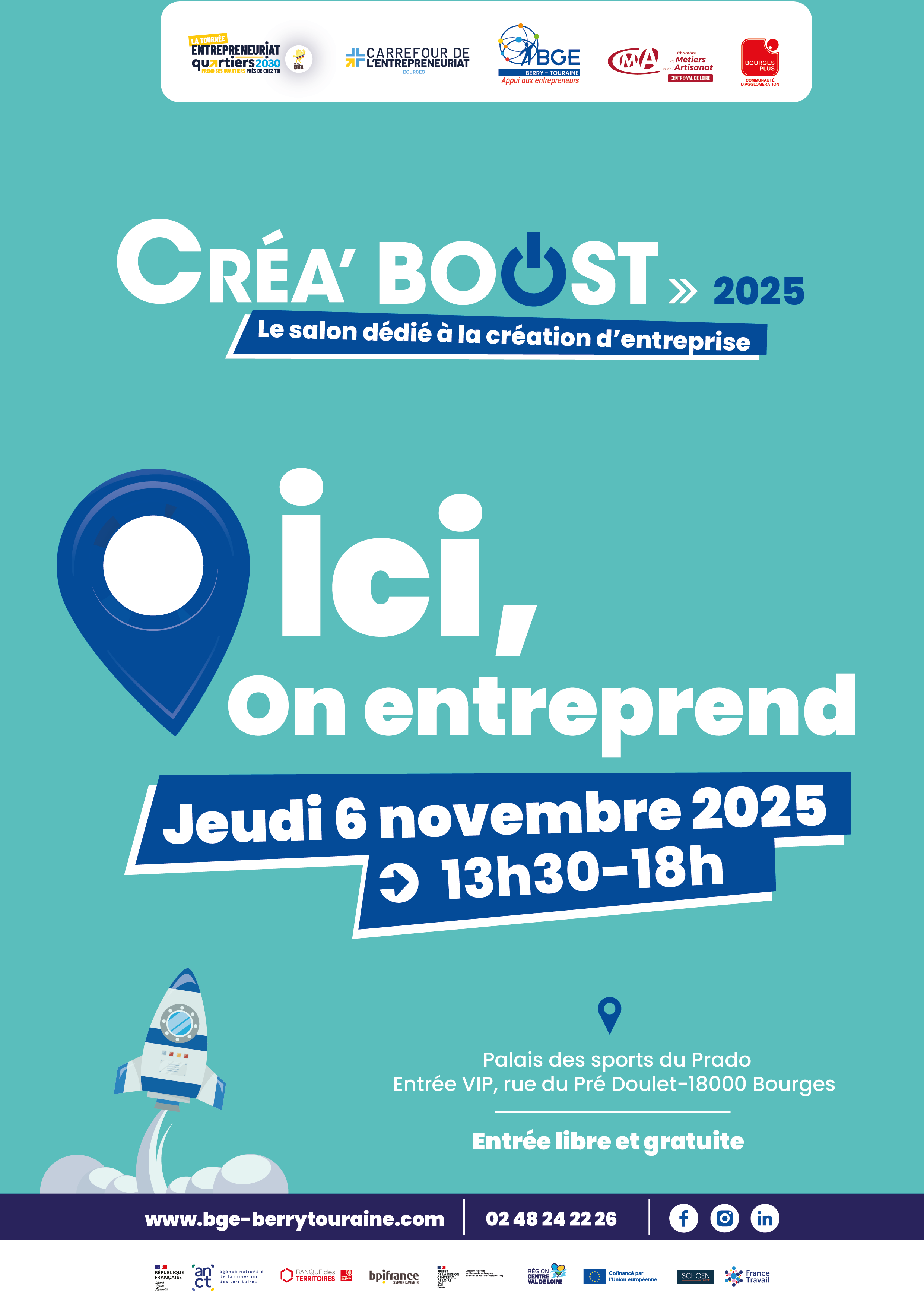 Cette année encore, l’évènement est coorganisé avec la Chambre de Métiers et de l’Artisanat Centre-Val de Loire et la communauté d’agglomération Bourges Plus , fortes de leurs implications sur le territoire et du soutien aux entreprises !
